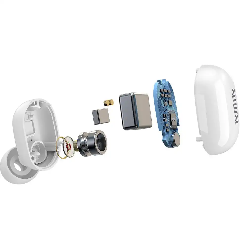 Τα in-ear ασύρματα ακουστικά Aiwa EBTW-150 συνδέονται με κάθε συσκευή που διαθέτει bluetooth. Συνοδεύονται από θήκη μεταφοράς και φόρτισης των ακουστικών.
