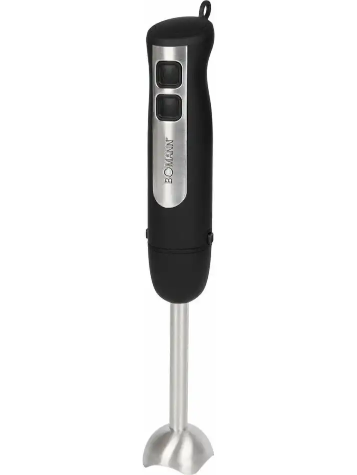 Ραβδομπλέντερ SM 6028 CB, της εταιρείας Bomann, με ισχύ 600 Watt. Με το ραβδομπλέντερ θα μπορέσετε να πολτοποιήσετε τρόφιμα για παιδικές τροφές, να ομογενοποιήσετε σάλτσες, να φτιάξετε σπιτική μαγιονέζα, να δημιουργήσετε smoothies από οποιοδήποτε φρούτο επιθυμείτε ή ακόμα και να ετοιμάσετε σούπες. Είναι πολύ πρακτικό, εύχρηστο και καταλαμβάνει λιγότερο χώρο, σε σχέση με ένα επιτραπέζιο μπλέντερ. Μεγάλο του πλεονέκτημα αποτελεί το γεγονός ότι μπορείτε να επεξεργάζεστε τα υλικά σας μέσα σε οποιοδήποτε σκεύος, χωρίς να χρειάζεται να τα μεταφέρετε και να συσσωρεύονται στην κουζίνα σας διαρκώς άπλυτα σκεύη. Κατά τη διάρκεια του μαγειρέματος καλό θα είναι να έχετε πάντα την κεφαλή βυθισμένη μέσα στα τρόφιμα που επεξεργάζεστε, ώστε να αποφεύγονται ανεπιθύμητα πιτσιλίσματα αλλά και τυχόν εγκαύματα, στην περίπτωση που το τρόφιμο που επεξεργάζεστε είναι ακόμα καυτό.