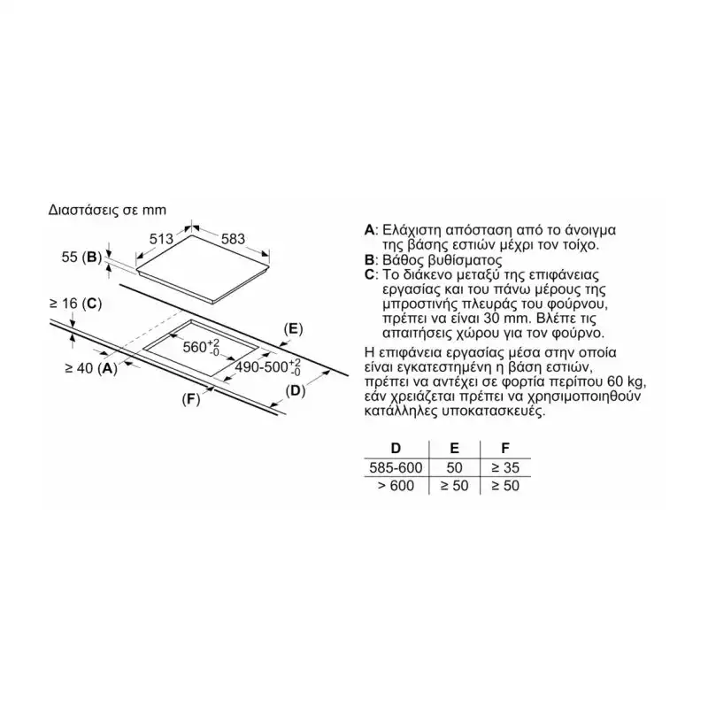 Διαστάσεις & ισχύς ζωνών μαγειρέματος: