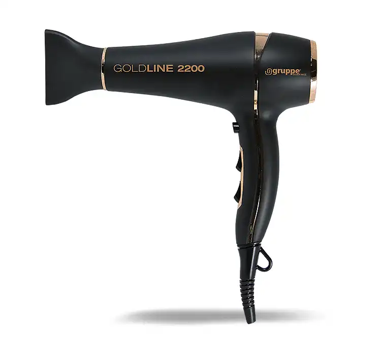 Επαγγελματικό πιστολάκι μαλλιών της Gruppe, που διαθέτει υψηλή ισχύ με δυνατή ροή αέρα για γρήγορο στέγνωμα και φορμάρισμα των μαλλιών.