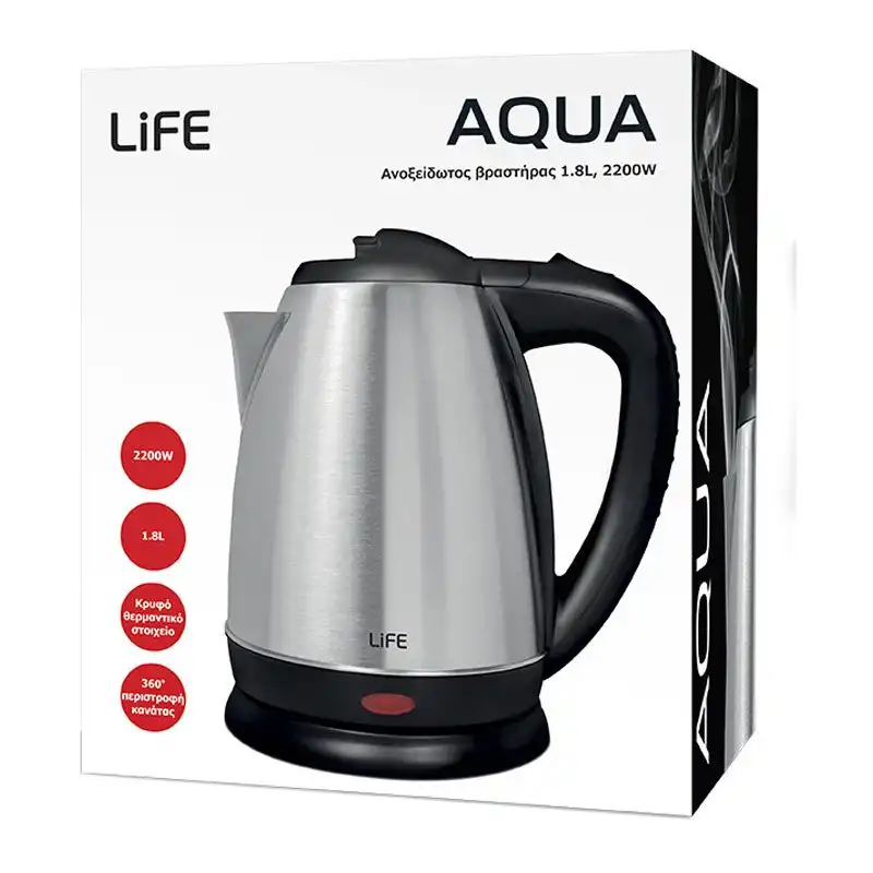 Ο βραστήρας LIFE WK-001 με μοντέρνο και κομψό σχεδιασμό, είναι κατασκευασμένος από ανοξείδωτο ατσάλι σε mat φινίρισμα. Διαθέτει κρυφό θερμαντικό στοιχείο που αποτρέπει την δημιουργία αλάτων στην αντίσταση, για μεγαλύτερη διάρκεια ζωής. Επιπλέον, έχει εργονομική cool touch λαβή για άνετη χρήση, καθώς και εύκολη τοποθέτηση του βραστήρα στην βάση.