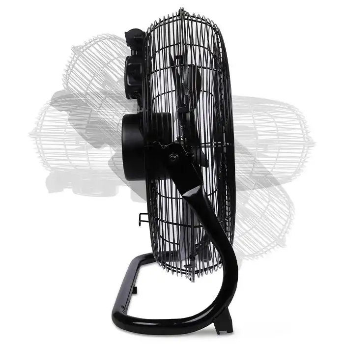 Διαθέτει δυνατότητα ρύθμισης γωνίας κλίσης, πρακτικό διακόπτη τριών ταχυτήτων λειτουργίας / απενεργοποίησης και ακτινωτό πλέγμα προστασίας.
