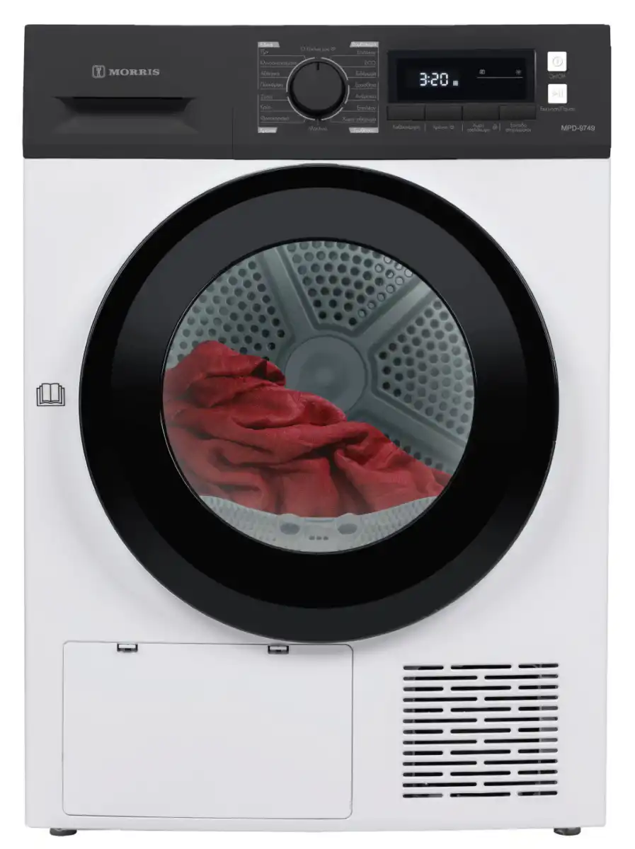 ✔ Το στεγνωτήριο Morris MPD-9749 με χωρητικότητα 9 κιλών, τεχνολογία Anti-Wrinkle και αντλία θερμότητας φροντίζει τα ρούχα σου απαλά και οικονομικά.