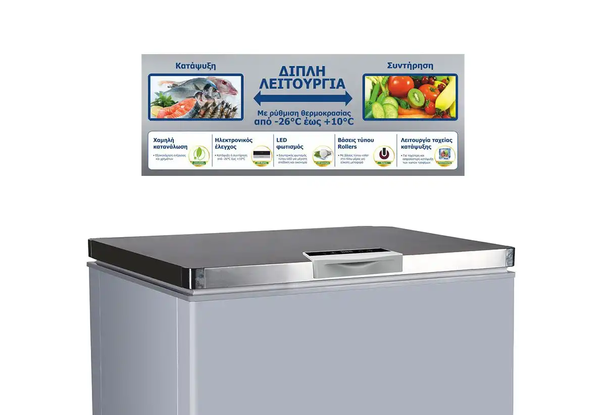 Δυνατότητα ρύθμισης θερμοκρασίας από -26°C έως -14°C στην κατάψυξη και από 0°C έως 10°C στην συντήρηση.