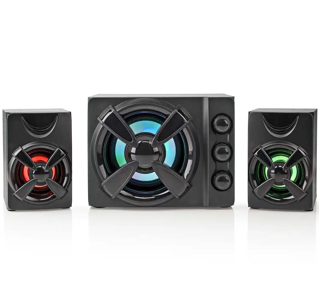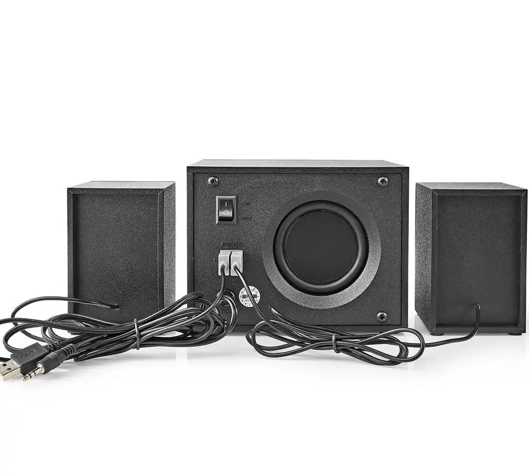 Το σύστημα ηχείων 2.1 της Nedis έχει ισχύ 11 watt προσφέροντας δυνατό ήχο, περιλαμβάνει subwoofer για πλούσιο μπάσο και δυο στερεοφωνικά ηχεία. Είναι ιδανικά για ακρόαση μουσικής αλλά και για gaming. Συνδέεται ενσύρματα με συσκευές που διαθέτουν υποδοχή για το κλασσικό βύσμα καρφί 3.5mm. Η τροφοδοσία τους πραγματοποιείται μέσω καλωδίου usb. Επιπλέον διαθέτει θύρα USB για να μπορείτε να ακούτε ήχο από το USB stick σας.