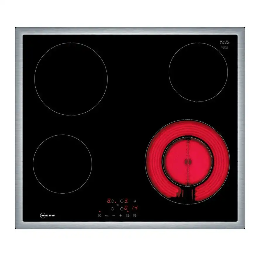 Οι κεραμικές εστίες είναι κομψές, αποτελεσματικές και πιο οικονομικές, σε σχέση με τις επαγωγικές. Τα ηλεκτρικά θερμαντικά στοιχεία βρίσκονται κάτω από την μαύρη γυάλινη επιφάνεια, όπως επίσης και τα κουμπιά αφής. Οι κεραμικές εστίες τοποθετούνται στο ίδιο επίπεδο με τον πάγκο και είναι σχετικά εύκολο να εγκατασταθούν.