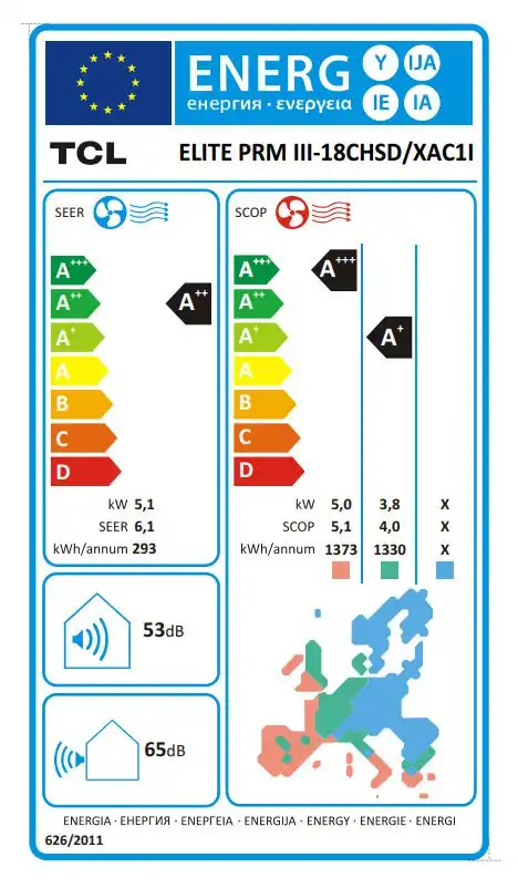- Κατανάλωση Ψύξης 293 kWh/y