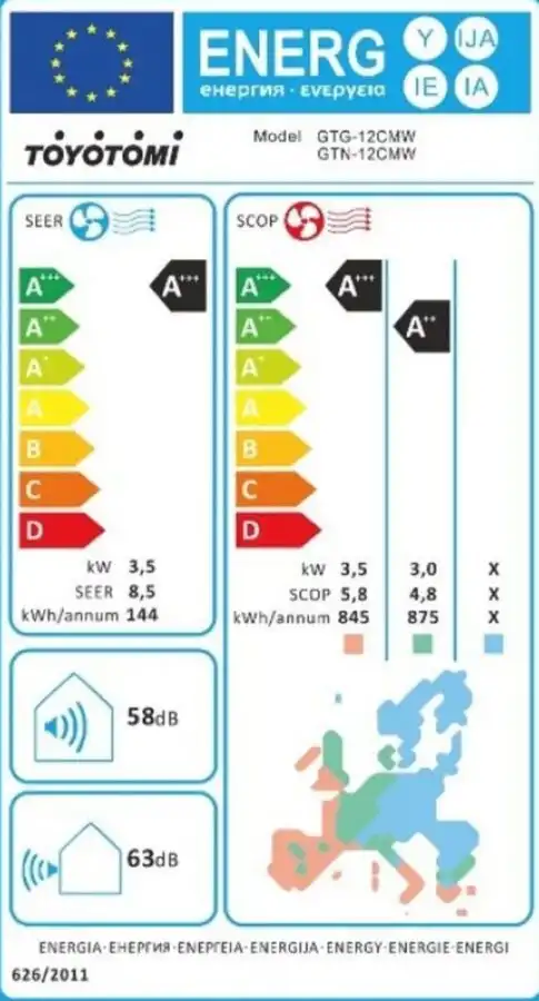 - Βαθμός Απόδοσης Θέρμανσης (SCOP) 4,8 W/W