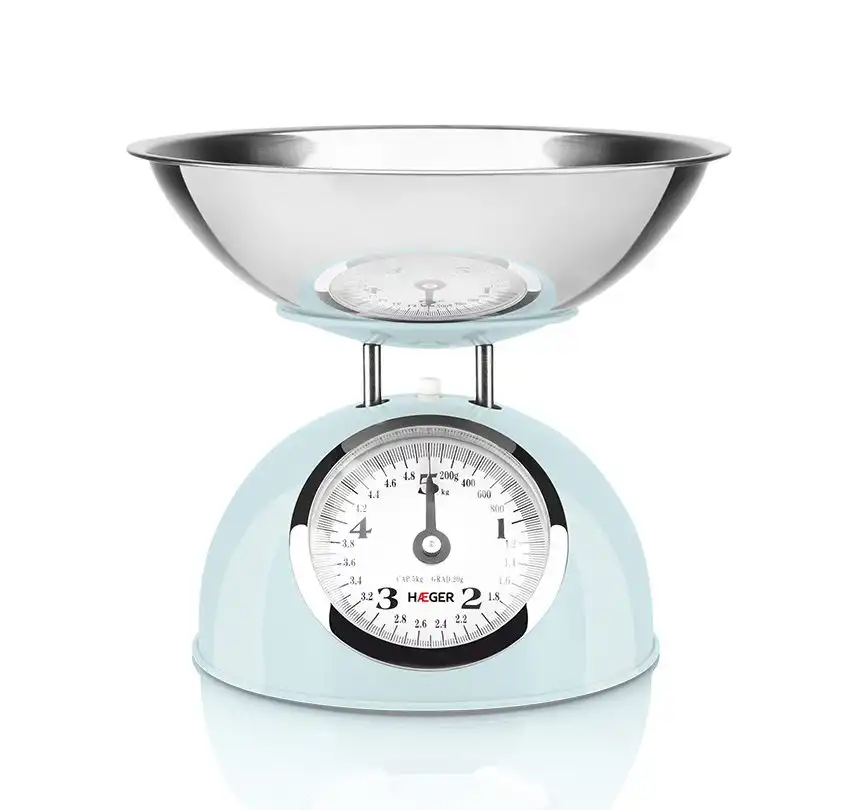 Η Μηχανική Ζυγαριά Κουζίνας Παστέλ Μπλε HAEGER είναι ο τέλειος συνδυασμός αποτελεσματικότητας και στυλ για την κουζίνα σας. Με ικανότητα να ζυγίζει έως 5 κιλά με ακρίβεια 20 γραμμάρια, αυτό το σκεύος είναι απαραίτητο για όποιον εκτιμά την ακρίβεια κατά την προετοιμασία συνταγών. Ο παστέλ μπλε σχεδιασμός του όχι μόνο προσθέτει μια παύλα χρώματος και ευθυμία στο δωμάτιο, αλλά προκαλεί επίσης μια ρετρό γοητεία. Αυτή η ζυγαριά δεν απαιτεί μπαταρίες ή ηλεκτρισμό, γεγονός που την καθιστά πρακτική και φιλική προς το περιβάλλον. Η οθόνη είναι μεγάλη και ευανάγνωστη, διασφαλίζοντας ότι μπορείτε να ελέγξετε γρήγορα τις μετρήσεις και να βελτιστοποιήσετε το χρόνο σας στην κουζίνα.