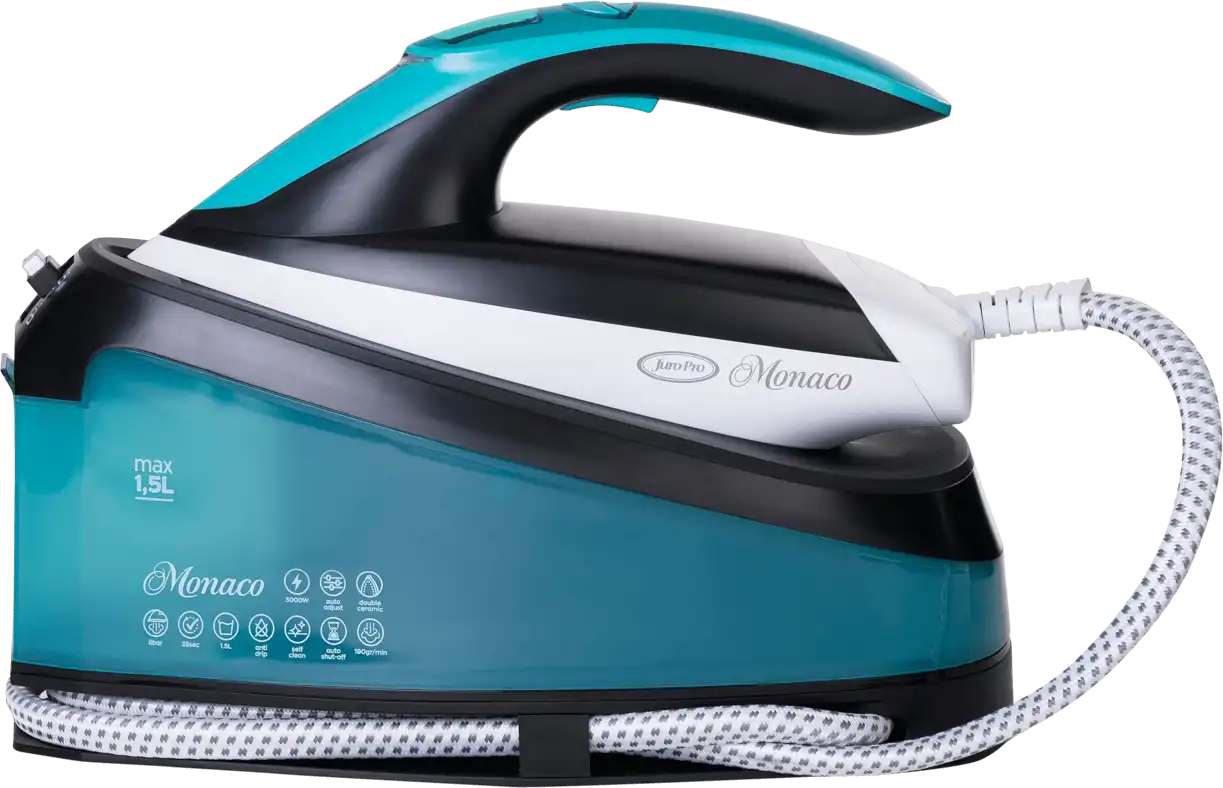 Το JURO PRO MONACO είναι εξοπλισμένο με σύστημα κατά του σταξίματος. Έτσι δεν θα σας προκαλέσει λεκέδες ποτέ επάνω στα υφάσματά σας αφού δεν αφήνει σταγόνες κατά τη διάρκεια του σιδερώματος.